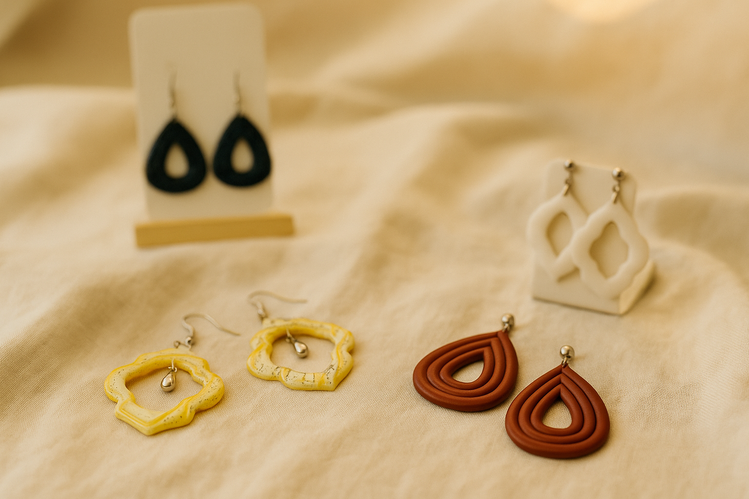 Varje par formas för hand i Sverige av polymerlera. Designen är inspirerad av stillhet, natur och en känsla av vemod – något vackert i det enkla. Små variationer gör varje par unikt.