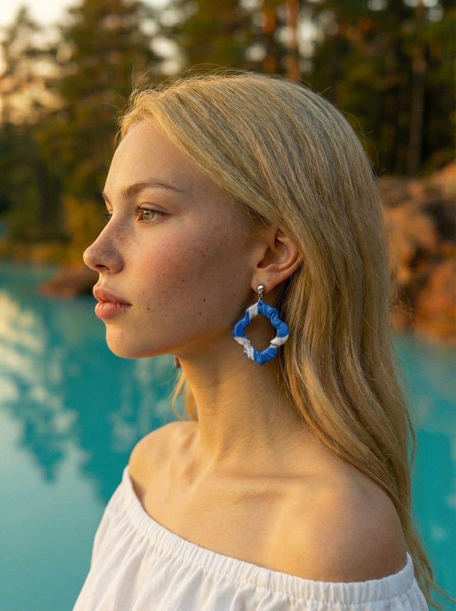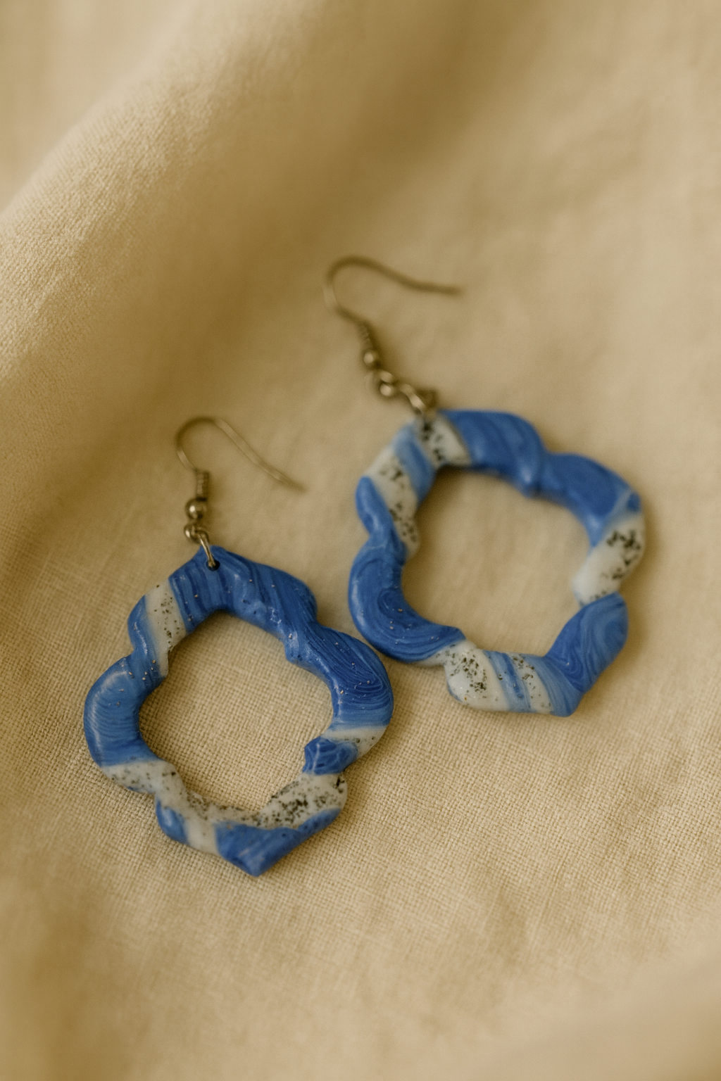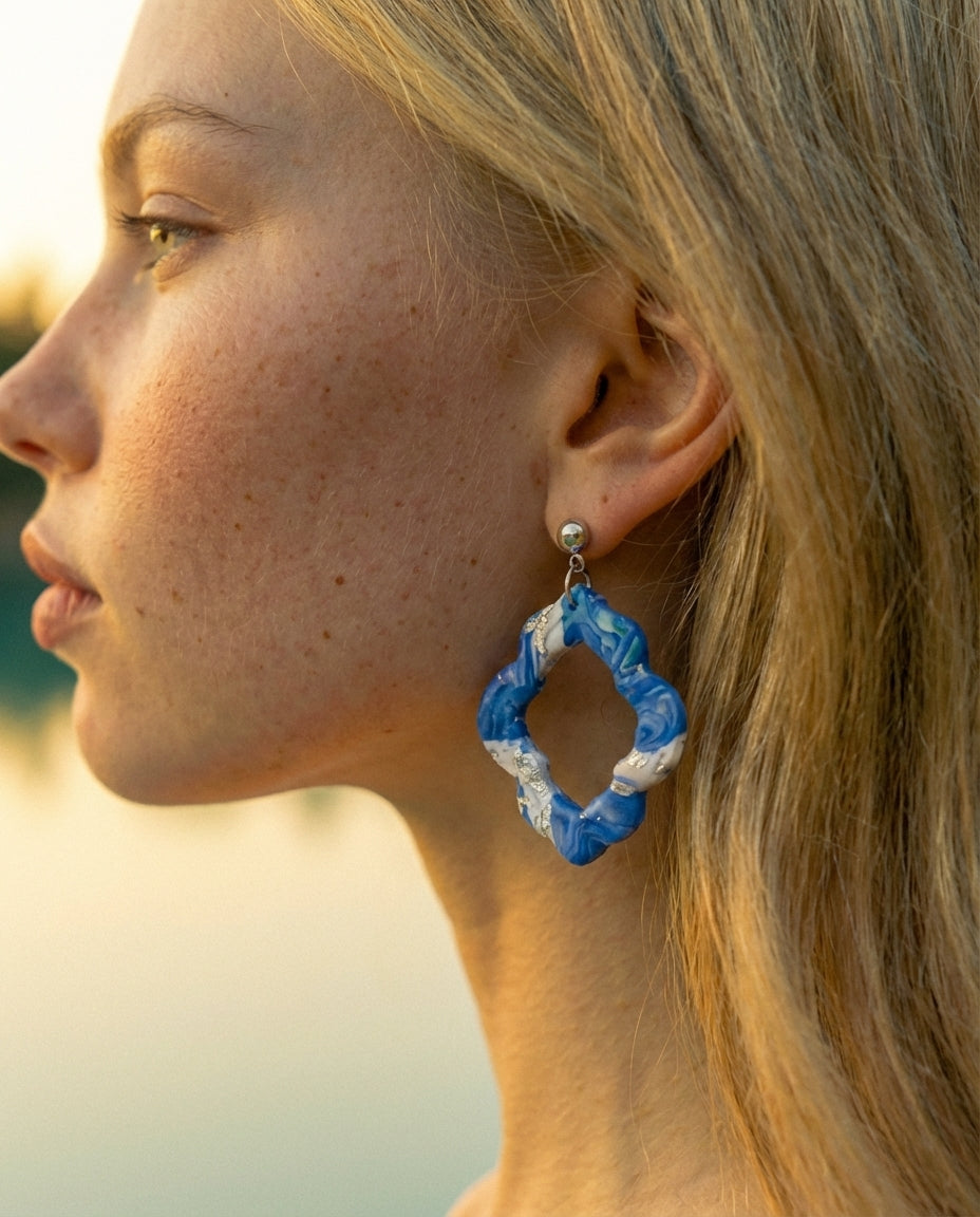 Varje par formas varsamt för hand i polymerlera, vilket gör varje smycke helt unikt i sitt mönster och uttryck.